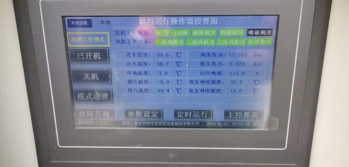 Air source screw heat pumps are used in 50,0000m2 central heating project. The heating capacity of single unit under standard condition is 620kw. The project adopts the distributed central heating mode, and there are two energy stations. No.1 energy station adopts the ground type installation, No.2 energy station adopts the frame type layered type. 63 sets of Hanbell LT-S-A series ultra-low ambient temperature two-stage heat pump compressors are used. During the heating operation from 2016 to 2018, all the 63 sets of equipments run smoothly. The indoor temperature of high-rise buildings reaches 22-26¡æ, and the temperature in villa reaches 20-22¡æ. The user feedbacks that the effect is good.